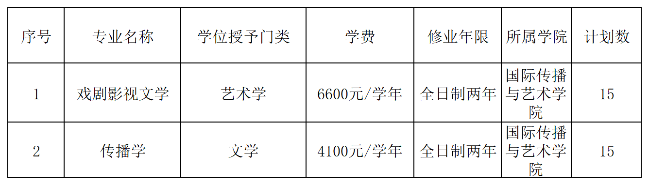 2024年全日制本科生第二学士学位2个招生专业计划总数为30人,招生专业详见下表。