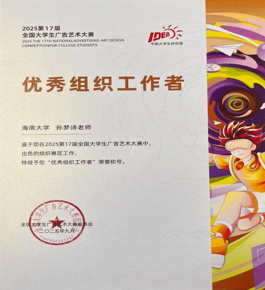 教师、大广赛海南赛区组委会秘书处孙梦诗,因卓越的组织协调能力被授予2025年度“优秀组织工作者”称号;黄色网站