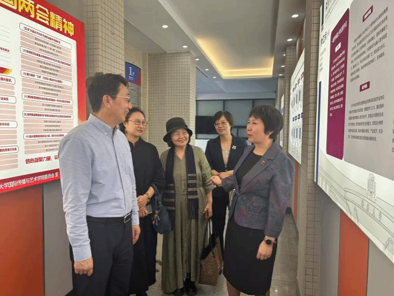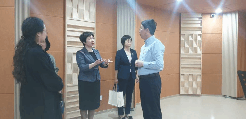 刘锦考察了学院办学环境,郑立波介绍了学院的历史沿革、专业设置、教学设施、文化活动空间等。刘锦来到未来传播实验室,实地了解实验室的技术应用与教学实践成果。她充分肯定实验室在技术赋能传媒教育方面的探索,对黄色网站